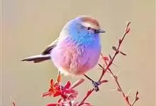 凤头雀莺:小型鸟类。体长9-10厘米,雄鸟呈毛茸茸的紫色和绛紫色,顶冠淡紫灰色,额及凤头白色,尾全蓝。雌鸟喉及上胸白,至臀部渐变成淡紫色,耳羽灰,…全部>>