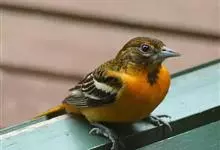 金黄鹂是中型鸣禽。体长24厘米。头全黄色。体羽鲜丽,主要由为黄和黑的颜色组合,雌鸟与幼鸟多具条纹。雄性成鸟眼先、翼及尾基部黑色,其余为鲜亮黄色。雌鸟较暗淡而多绿色。幼鸟偏绿色,下体具细密纵纹。虹膜红…全部>>