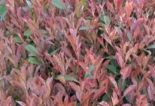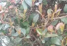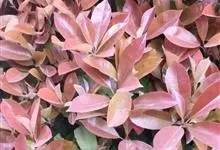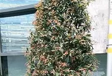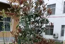石楠 Kalkman),是蔷薇科石楠属的常绿乔木,高5~12米,株型紧凑,树冠圆球形。树枝为褐灰色;鳞片为褐色,没有毛;叶片革质,长椭圆至侧卵状椭圆形,有锯齿,新叶红色光亮。复伞房花序,白色小花,…全部>>