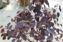 紫锦木是大戟科、大戟属的常绿乔木。叶圆卵形,主脉于两面明显,侧脉数对,边缘全缘,两面红色;花序生于二歧分枝的顶端,总苞阔钟状,裂片呈三角形,边缘具毛,腺体深绿色呈半圆形,…全部>>