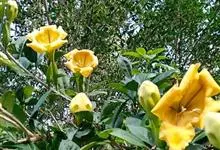 金杯藤 P.S. Green)是茄科、金杯藤属多年生常绿大型藤本。茎及枝条粗壮。叶片互生。长椭圆形。先端突尖。叶面有光泽。全株具有毒乳汁。花顶生,单朵或数朵,花苞棒槌状。从绿色转变为淡黄色。…全部>>