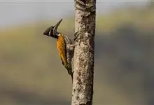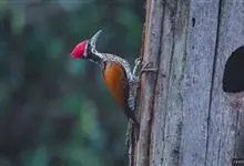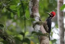 白腹黑啄木鸟,是啄木鸟科、黑啄木鸟属的中型鸟类,体长43-46厘米,头顶具长的红色羽冠,颚纹亦为红色,其余头、颈、胸和上体黑色,腰和腹白色,飞翔时白色腋羽和翅下覆羽亦明显可见。雌鸟头顶黑色,…全部>>