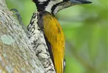 三趾啄木鸟,是啄木鸟科、啄木鸟属的小型鸟类,体长20-23厘米,雄鸟头顶金黄色,雌鸟黑色而具白色斑点。眼至耳覆羽黑色,眼后有一条白色纵纹,颊纹白色,颚纹黑色,甚为醒目。枕和后颈黑色,…全部>>