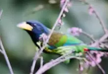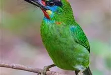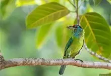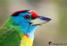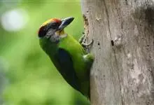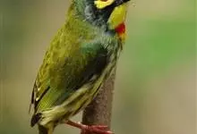 金喉拟啄木鸟,是须鴷科、拟啄木鸟属的鸟类。金喉拟啄木鸟为小型鸟类,体长19-24厘米。额深红色,头顶金黄色,后枕具一大块深红色斑,耳羽和头侧银灰色,上体草绿色,颏和上喉金黄色,下喉淡银灰色,…全部>>