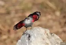 红翅旋壁雀:体重15-23克,体长120-178毫米。是一种体型略小的鸟类。尾短而嘴长,翼具醒目的绯红色斑纹。飞羽黑色,外侧尾羽羽端白色显著,初级飞羽两排白色点斑飞行时成带状。繁殖期雄鸟脸及喉黑色,…全部>>