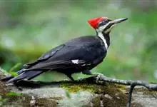 白腹黑啄木鸟,是啄木鸟科、黑啄木鸟属的中型鸟类,体长43-46厘米,头顶具长的红色羽冠,颚纹亦为红色,其余头、颈、胸和上体黑色,腰和腹白色,飞翔时白色腋羽和翅下覆羽亦明显可见。雌鸟头顶黑色,…全部>>