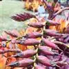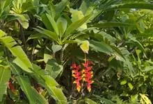金嘴蝎尾蕉:芭蕉科,蝎尾蕉属多年生草本植物。株高可达6米。叶片长圆形,叶面绿色,叶背亮紫色;顶生花序,直立,薄被短柔毛;苞片绿色,开放时突露,花被片红色,顶端绿色,狭圆柱形,果三棱形,灰蓝色,有种子…全部>>