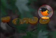 金黄鹂是中型鸣禽。体长24厘米。头全黄色。体羽鲜丽,主要由为黄和黑的颜色组合,雌鸟与幼鸟多具条纹。雄性成鸟眼先、翼及尾基部黑色,其余为鲜亮黄色。雌鸟较暗淡而多绿色。幼鸟偏绿色,下体具细密纵纹。虹膜红…全部>>