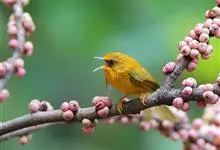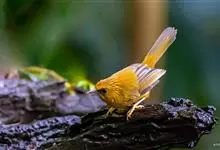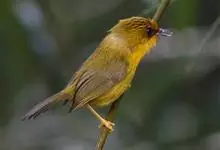 金头穗鹛小型鸟类,体长10~11厘米,是一种黄色小鸟。头顶金黄色有黑色纵纹,眼先黑色,在头、颊和耳羽金黄色的衬托下亦甚醒目。上体橄榄黄色,下体亮黄色,腹和两胁沾绿。…全部>>