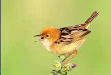 金头扇尾莺体小而具褐色纵纹的莺。嘴细长,略向下弯;翼短,体型娇小,尾长。下体皮黄,喉近白,尾深褐,尾端皮黄。雌雄羽色相近,羽色单调。繁殖期雄鸟顶冠亮金色,腰褐色。雌鸟及非繁殖期雄鸟头顶密布黑色细纹,…全部>>