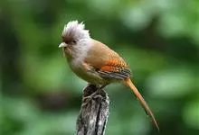 栗额斑翅鹛是噪眉科、斑翅鹛属中型鸟类,体长20-23厘米。头顶具浓密的羽冠,前额栗棕色,头顶灰褐色。上体棕褐色,两翅棕褐色具黑色横斑,翅基外缘有一黑斑,尾呈凸状,棕褐色具黑色横斑。下体棕褐色,…全部>>