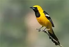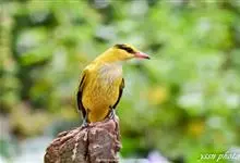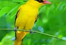 金黄鹂是中型鸣禽。体长24厘米。头全黄色。体羽鲜丽,主要由为黄和黑的颜色组合,雌鸟与幼鸟多具条纹。雄性成鸟眼先、翼及尾基部黑色,其余为鲜亮黄色。雌鸟较暗淡而多绿色。幼鸟偏绿色,下体具细密纵纹。虹膜红…全部>>