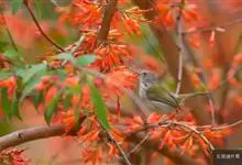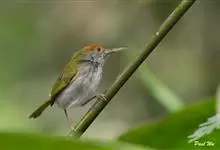 普通缝叶莺,是雀形目鹅科莺亚科缝叶莺属一种。体长10-14厘米,体重7-10克,雄鸟前额棕红,头顶至枕棕橄榄褐,上体橄榄绿染黄,飞羽及尾羽暗褐;繁殖期雄鸟的中央尾羽特形延长,下体淡皮黄白色。…全部>>