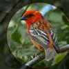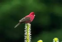 酒红朱雀小型鸟类,体长13~15厘米。雄鸟通体深红色,头部深朱红或棕红色,下背和腰玫瑰红色,眉纹粉红色而具丝绢光泽。两翅和尾黑褐或灰褐色、具暗红色狭缘,内侧两枚三级飞羽具淡粉红色先端。…全部>>
