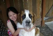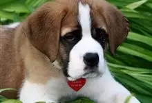 圣伯纳犬,别名巴里汉德,属于大型工作犬,肩高约65~90厘米,体重约50~90千克。圣伯纳犬身体强壮,被毛红褐色和白色相间,头圆而宽大。颈部强壮,胸宽深,背直。前肢长直,腕关节略前倾,后肢腿骨粗壮,…全部>>