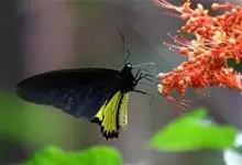 金裳凤蝶是凤蝶科、裳凤蝶属的动物。金裳凤蝶身体呈黑色,头、颈和胸侧有红毛,腹部有黑黄两色相间条纹,雄蝶前翅黑色,具黑天鹅绒光泽,各脉两侧灰白色,后翅金黄色,各室外缘有等腰三角形黑斑1枚,斑内侧有晕,…全部>>