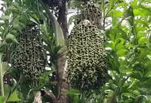 鱼尾葵,棕榈科鱼尾葵属植物。鱼尾葵幼叶近革质,老叶厚革质;羽片互生,罕见顶部的近对生,最上部的羽片大,呈樱形,侧边的羽片小,菱形似鱼尾。外缘笔直,花聚生3朵,花瓣黄色;萼片宽圆形;花药线形,黄色,…全部>>