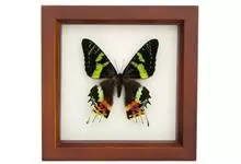 巴黎翠凤蝶中型凤蝶,躯体黑褐色,散布绿色亮鳞。后翅M3脉端有一明显叶状尾突。翅背面底色黑褐色,密布亮鳞,后翅前侧有一枚蓝绿色亮斑,与后翅中央之绿色亮线连接。后翅臀区有一紫红色圈纹。翅腹面底色褐色,于…全部>>