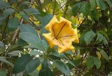 金杯藤 P.S. Green)是茄科、金杯藤属多年生常绿大型藤本。茎及枝条粗壮。叶片互生。长椭圆形。先端突尖。叶面有光泽。全株具有毒乳汁。花顶生,单朵或数朵,花苞棒槌状。从绿色转变为淡黄色。…全部>>