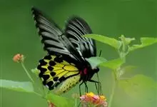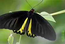 金裳凤蝶是凤蝶科、裳凤蝶属的动物。金裳凤蝶身体呈黑色,头、颈和胸侧有红毛,腹部有黑黄两色相间条纹,雄蝶前翅黑色,具黑天鹅绒光泽,各脉两侧灰白色,后翅金黄色,各室外缘有等腰三角形黑斑1枚,斑内侧有晕,…全部>>