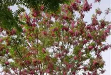 红花刺槐是豆科刺槐属的植物。其干皮深纵裂;枝具托叶刺,羽状复叶互生,叶片卵形或长圆形,具芒尖;基部圆形。花两性;总花序下垂;花冠粉红色,芳香;果条状长圆形,腹缝有窄翅。花期4~5月,果期9~10月。…全部>>
