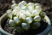 姬玉露 M.B.Bayer)是阿福花科,十二卷属的多年生草本。植株无茎,初为单生,后逐渐呈群生状;叶绿色,肉质,上半段呈透明或半透明状,称为“窗”,用于光合作用。总状花序,小花白色。原产南非,…全部>>