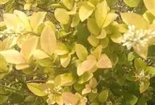 金叶女贞是木樨科女贞属木本植物。叶片为革,椭圆形或卵状椭圆形,新叶金黄色,老叶黄绿色至绿色;花为两性,呈筒状白色小花;果实为椭圆形,内含一粒种子,颜色为黑紫色。花期5—6月,果期10月。…全部>>
