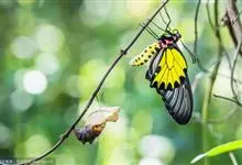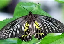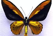 金裳凤蝶是凤蝶科、裳凤蝶属的动物。金裳凤蝶身体呈黑色,头、颈和胸侧有红毛,腹部有黑黄两色相间条纹,雄蝶前翅黑色,具黑天鹅绒光泽,各脉两侧灰白色,后翅金黄色,各室外缘有等腰三角形黑斑1枚,斑内侧有晕,…全部>>