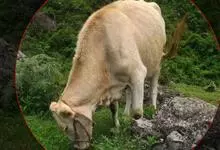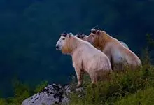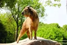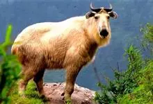 羚牛,偶蹄目牛科羚牛属哺乳动物,俗称扭角羚、野山牛、盘羊。其体形粗壮。尾短。吻鼻部隆起且裸露。前额隆起,毛短而蓬松。角基粗,由头顶长出后先向上升起,又突然翻转,靠近头部,复向外伸,然后又向后弯转,…全部>>