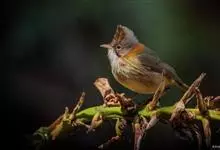 纹喉凤鹛:小型鸟类,体长13-16厘米。头顶和羽冠暗褐色或褐灰色,上体橄榄褐色,飞羽黑褐色,外侧次级飞羽表面橙黄色,构成一块纵形翼斑,极为醒目。颏、喉淡棕白色,具黑色纵纹,腹和尾下覆羽橙黄色。…全部>>