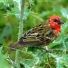 红额金翅雀:共有14个亚种。小型鸟类,体长12-14厘米。额、脸颊和颏朱红色,眼先和眼周黑色,在淡色的头部极为醒目。上体灰褐或乌褐色,尾上覆羽白色,两翅和尾黑色,翅上有黄色斑。下体喉、胸灰褐或乌褐色…全部>>
