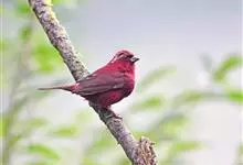 酒红朱雀小型鸟类,体长13~15厘米。雄鸟通体深红色,头部深朱红或棕红色,下背和腰玫瑰红色,眉纹粉红色而具丝绢光泽。两翅和尾黑褐或灰褐色、具暗红色狭缘,内侧两枚三级飞羽具淡粉红色先端。…全部>>