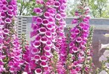 毛地黄是车前科、毛地黄属一年生或多年生草本植物。株高0.5—1米,茎直立,少分枝,全株被灰白色短柔毛和腺毛叶基生,呈莲座状,卵圆形或卵状披针形。顶生总状花序,花冠钟状,紫红色,内面有浅白斑点。菊果卵形。…全部>>