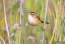 黑眉苇莺:体重7-11克,体长11-13厘米。上体橄榄棕褐色;眉纹淡黄色,杂有明显黑褐色纵纹;第2枚初级飞羽较第6枚短;下体白色,两胁暗棕色。虹膜暗褐色;嘴黑褐色,下嘴基淡褐色;脚暗褐色。…全部>>