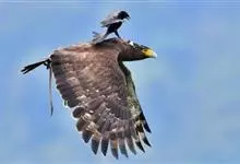 蛇雕是鹰形目鹰科蛇雕属鸟类,又称蛇鹰、白腹蛇雕、冠蛇雕。成鸟额部白色,头顶黑色,枕部黑色带白斑的冠羽可呈扇状打开;上体暗褐色,具窄的白色羽缘;尾黑色,具一条白色的宽中央横带及白色的窄外缘;翼褐色杂白斑,…全部>>