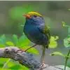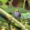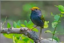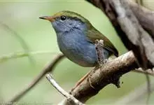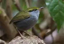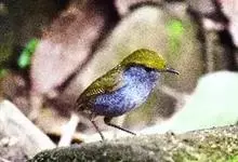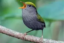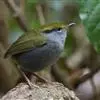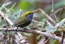 金冠地莺:形态与灰腹地莺相似,上体橄榄绿,前额至头顶渲染亮金黄色;下体几乎纯暗石板灰色,下嘴基部橙红色或橙黄色。虹膜褐色;上嘴角褐色,下嘴基部橙红色或深橙黄色直至嘴尖;跗跖和趾褐色,爪褐色。…全部>>