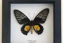 金裳凤蝶是凤蝶科、裳凤蝶属的动物。金裳凤蝶身体呈黑色,头、颈和胸侧有红毛,腹部有黑黄两色相间条纹,雄蝶前翅黑色,具黑天鹅绒光泽,各脉两侧灰白色,后翅金黄色,各室外缘有等腰三角形黑斑1枚,斑内侧有晕,…全部>>