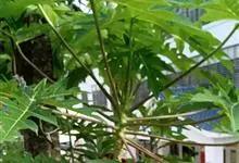 番木瓜,番木瓜科番木瓜属的常绿软木质小乔木,高达10米,具有乳汁;茎不分枝或有时于损伤处分枝;叶大且聚生于茎顶,近似盾形,叶柄中空;花单性或两性,有些品种雄株偶尔生两性花或雌花,…全部>>
