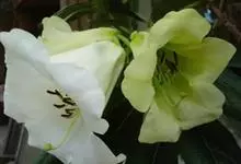 姜花又名野姜花。是姜科姜花属的多年生草本植物,茎高1-2米;叶片长圆状披针形或披针形,叶面光滑,叶背被短柔毛;穗状花序顶生,椭圆形,花芬芳,白色;蒴果卵状三棱形,微黄绿色;种子鲜红色,具橘红色的假种皮。…全部>>