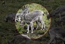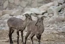岩羊是偶蹄目牛科岩羊属哺乳动物。颜色与岩石相像,两性皆具角,雄羊角大而弯曲,角外表具不明显的横棱且体壮实,雌羊角短小;头较小,眼大,耳小,颏下无须;体背面为棕灰或石板灰色略有蓝色反光,…全部>>