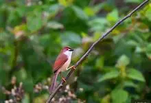 金眼鹛雀是莺科、鹛雀属小型鸟类。体长16-20厘米。头顶和上体棕褐色,两翅表面肉桂红色,尾褐色具明暗相间横斑。眼周金黄色,眼先、眼上、眼下、颊以及颏、喉和上胸概为白色,其余下体茶黄色,脚橙黄色。…全部>>