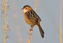 金头扇尾莺体小而具褐色纵纹的莺。嘴细长,略向下弯;翼短,体型娇小,尾长。下体皮黄,喉近白,尾深褐,尾端皮黄。雌雄羽色相近,羽色单调。繁殖期雄鸟顶冠亮金色,腰褐色。雌鸟及非繁殖期雄鸟头顶密布黑色细纹,…全部>>