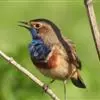 蓝点颏亦称“蓝喉歌鸲”,通称蓝靛颏儿。身体大小和麻雀相似,体长12-13厘米,体重17-18克。头部、上体主要为土褐色。眉纹白色。尾羽黑褐色,基部栗红色。颏部、喉部辉蓝色,下面有黑色横纹。下体白色。…全部>>
