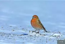 红眉朱雀:体长15厘米,是一种中等体型的朱雀。上体褐色斑驳,眉纹、脸颊、胸及腰淡紫粉,臀近白。雌鸟无粉色,但具明显的皮黄色眉纹。雄雌两性均甚似体型较小的曙红朱雀,但嘴较粗厚且尾的比例较长。…全部>>