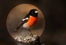 燕雀属小型鸟类,体长14-17厘米。嘴粗壮而尖,呈圆锥状。雄鸟从头至背辉黑色,背具黄褐色羽缘。腰白色,颏、喉、胸橙黄色,腹至尾下覆羽白色,两胁淡棕色而具黑色斑点。两翅和尾黑色,翅上具白斑。…全部>>