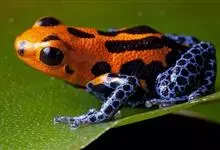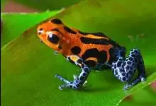 箭毒蛙,是无尾目箭毒蛙科箭毒蛙属动物。箭毒蛙体形较小,一般长1-6厘米,身上的颜色多为黑色与红色、黄色、橙色、绿色等;皮肤内有粘液分泌腺,能使皮肤随时保持湿润;四肢布满鳞纹;足间无蹼。…全部>>