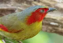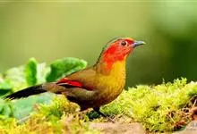 红翅薮鹛是噪眉科、薮鹛属中型鸟类,体长21-24厘米。头顶灰褐色,头侧和颈侧赤红色,上体橄榄褐色,翅上具红色块斑,尾具红色或橙黄色块斑,下体灰色沾褐。虹膜褐色或红色,嘴黑色,脚暗褐色或淡灰褐色。…全部>>