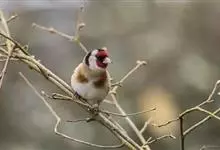 红额金翅雀:共有14个亚种。小型鸟类,体长12-14厘米。额、脸颊和颏朱红色,眼先和眼周黑色,在淡色的头部极为醒目。上体灰褐或乌褐色,尾上覆羽白色,两翅和尾黑色,翅上有黄色斑。下体喉、胸灰褐或乌褐色…全部>>