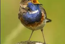 蓝点颏亦称“蓝喉歌鸲”,通称蓝靛颏儿。身体大小和麻雀相似,体长12-13厘米,体重17-18克。头部、上体主要为土褐色。眉纹白色。尾羽黑褐色,基部栗红色。颏部、喉部辉蓝色,下面有黑色横纹。下体白色。…全部>>