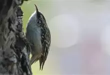 旋木雀是旋木雀科旋木雀属的一种动物。小型鸟类,体长12~15厘米,平均重10克。嘴长而下曲,上体棕褐色具白色纵纹,腰和尾上覆羽红棕色,尾黑褐色,外翈羽缘淡棕色,翅黑褐色,翅上覆羽羽端棕白色,…全部>>